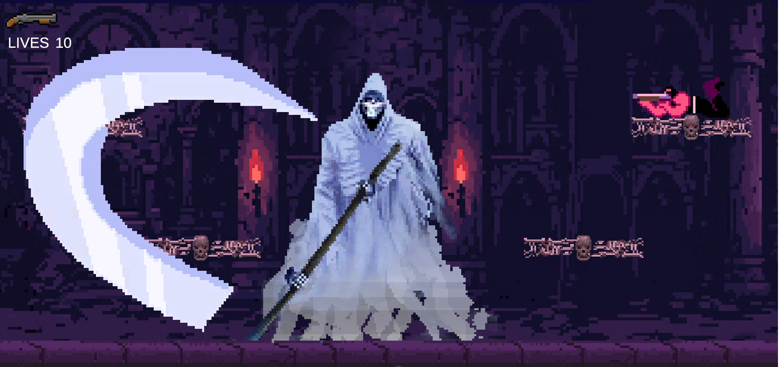 The Reaper is designed as a turning point in the game’s progression — a relentless foe who embodies the supernatural forces ruling the vampire sanctuary. We’re experimenting with attack patterns, animations, and making sure the fight feels both punishing and rewarding, staying true to the Run and Gun spirit.